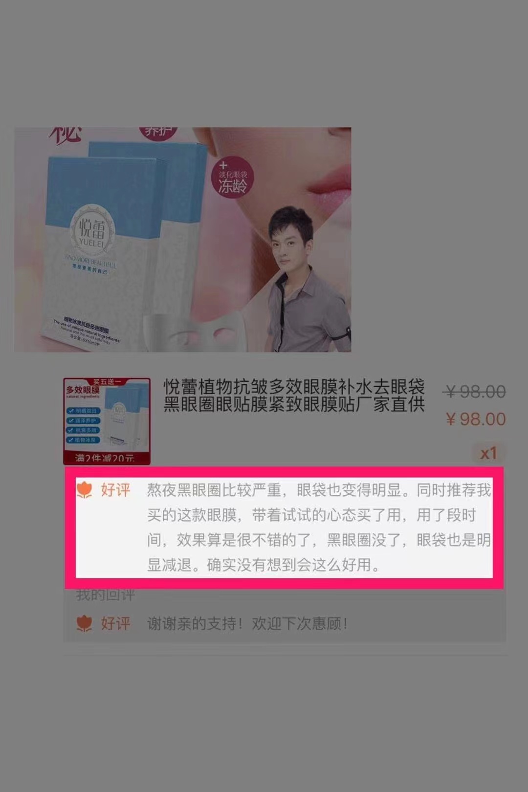 >>> 悦蕾 植物抗衰多效眼膜 98RMB/6P